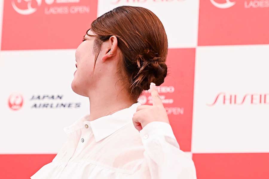普段はキャップかバイザーを被るプロたちは、もれなくヘアメイクに感動。櫻井心那、大里桃子、小祝さくらは韓国発で流行している「カチモリヘア」(おだんごを作り、毛先を残すヘアスタイル)に喜び、前週優勝で今季3勝の佐久間朱莉は「髪とか、こんなのは自分ではできないので、今日、お風呂に入るのがもったいないです」と言い、笑っていた。