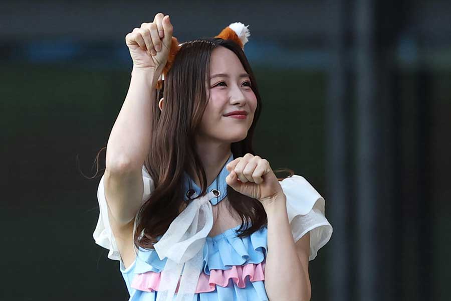 この日はファーストピッチにも登場。日本ハムのユニホームと黒のミニスカート姿でマウンドに上がると、大きく振りかぶって投げたボールは一塁方向に大きく逸れてしまった。大暴投に、声にならない声を漏らしながら、恥ずかしそうにマウンド上でうずくまる。照れ笑いを手で隠しながら立ち上がり、再びお辞儀した。