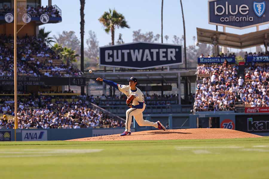米大リーグ・ドジャースの大谷翔平投手は5日(日本時間6日)、本拠地アストロズ戦に「1番・投手兼DH」で先発出場。右ひじ手術から復帰後4度目の先発は、現地時間で31歳のバースデー登板となった。2回31球を投げ、1安打3奪三振で無失点の好投。防御率は1.50となった。切れ味鋭い変化球には、米実況も「ビデオゲームのようだ!」と驚きの声をあげた。