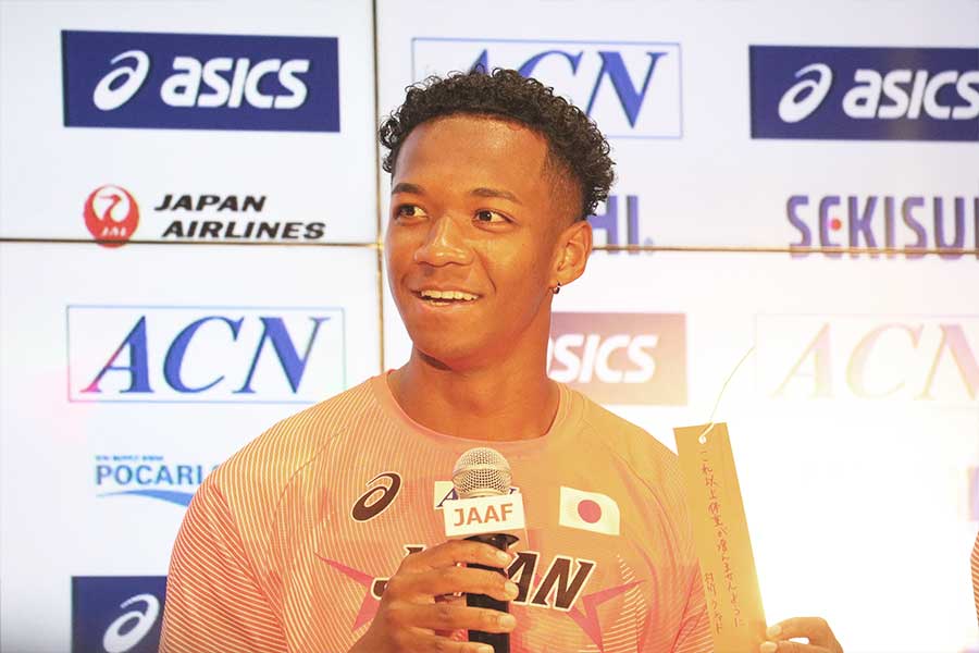 特に2日目は「感動するポイントが多々あって、すごく刺激的だった」。具体例を求められると、「1つに決めるのが本当に難しいぐらい。日本選手権ってこんな泣ける番組だったかな」と漏らし、報道陣の笑いを誘った。その上で、JALで同僚の高良彩花(女子走り幅跳び)や、日大の先輩である崎山雄太(男子やり投げ)の優勝、桐生祥秀(男子100メートル)の優勝インタビューを例に挙げた。