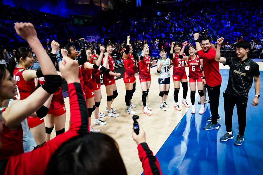 昨年大会も出場し、パリ五輪を最後に引退した日本の元エース。ロンドン五輪銅メダリストの木村沙織さんと並び、「(コートの)外は外で緊張します。(NLは)タフな試合が続く。コンディションを整えてきていると思うので、今日の試合も楽しみにしています」とコメントした。