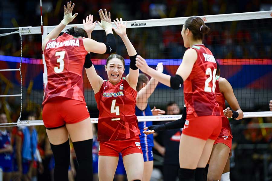 「買取大吉 バレーボールネーションズリーグ2025 千葉大会」の女子が9日、千葉ポートアリーナで開幕。日本は予選ラウンド第3週の初戦で、フランスを3-0(25-23、25-16、25-19)で下して通算7勝2敗とした。試合中には日本代表ユニホームの“肩”にファンの視線が集中した。