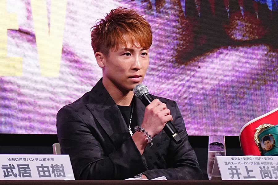 会見にはWBO世界バンタム級王者・武居由樹(大橋)も同席。武居は同興行で同級1位クリスチャン・メディナ(メキシコ)との防衛戦に臨む。興行は、NTTドコモの映像配信プラットフォーム「Lemino」で独占無料生配信。戦績は32歳の井上が30勝(27KO)、30歳のアフマダリエフが13勝(10KO)1敗。