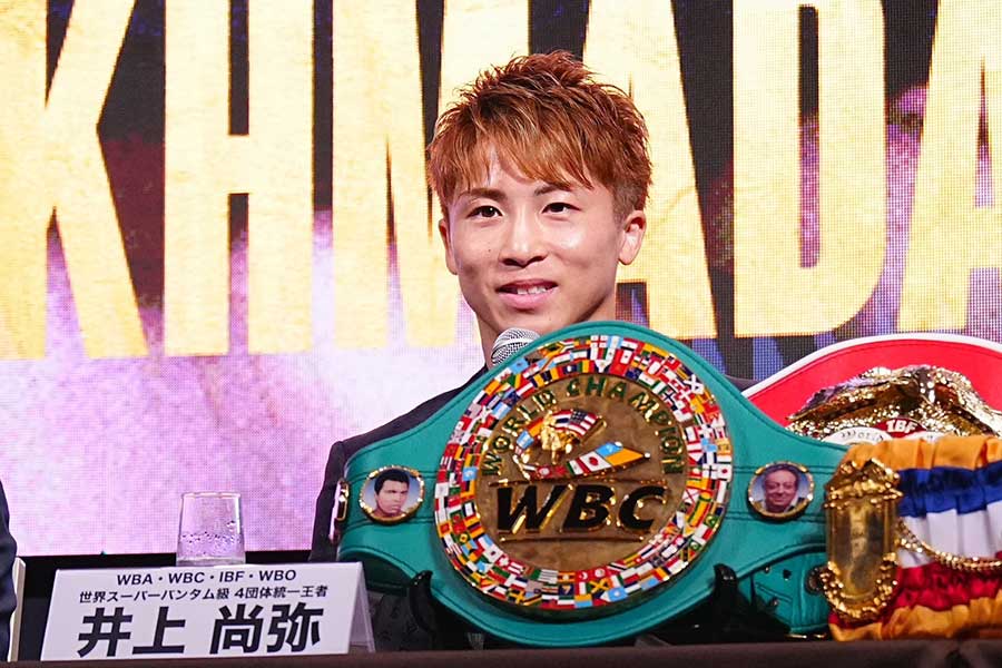 井上は主要4団体と米専門誌「ザ・リング」の5本のベルトを前に座った。「キャリア最大の強敵」と自身が評するアフマダリエフとの対戦。勝てば世界4階級制覇王者の“カネロ”ことサウル・アルバレス(メキシコ)を抜き、単独で世界最多5度目の4団体同時防衛となる。