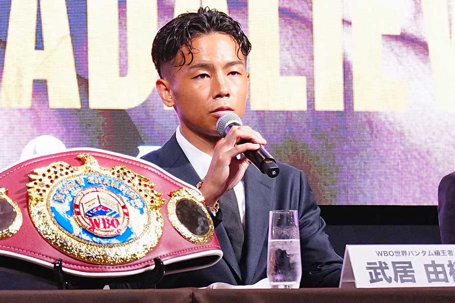 ボクシングのWBO世界バンタム級王者・武居由樹(大橋)が10日、都内で会見。9月14日に愛知・IGアリーナで、同級1位クリスチャン・メディナ(メキシコ)と対戦すると発表した。指名試合による3度目の防衛戦に臨む。興行は、NTTドコモの映像配信プラットフォーム「Lemino」で独占無料生配信。