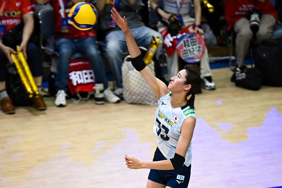 「買取大吉 バレーボールネーションズリーグ2025 千葉大会」の女子が10日、千葉ポートアリーナで行われ、日本は予選ラウンド第3週の第2戦で韓国と対戦した。18歳の秋本美空が代表初スタメン。力強いスパイクも決めるなど能力を見せた。