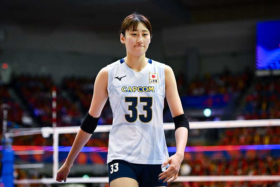 勢いに乗った第2セットは強打にフェイントと得点を量産。競り合いとなった24-24の場面では、自身のレシーブが崩れてピンチを迎えたが、直後に1枚ブロックでシャットアウト。流れを日本へ大きく引き寄せた。