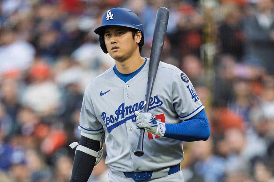 米大リーグ・ドジャースの大谷翔平投手は11日(日本時間12日)、敵地サンフランシスコでのジャイアンツ戦に「1番・DH」で先発出場。3回に自身初となる、右翼場外の海へ飛び込む32号“スプラッシュ弾”を放った。その後の打席ではバットが真っ二つに折れる事件も。ドジャースの地元局はこの場面に注目し「残った部分は1000ドル(約14万7000円)で売れる」と笑い交じりに伝えた。