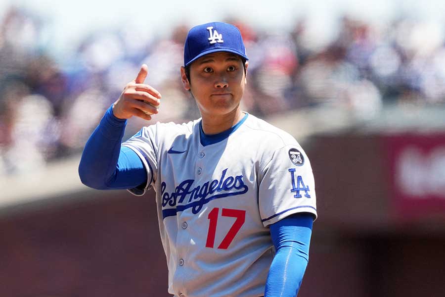 米大リーグ・ドジャースの大谷翔平投手は12日(日本時間13日)、敵地ジャイアンツ戦に「1番・投手兼DH」で先発出場した。5度目の登板で今季最長となる3回1安打無失点、4奪三振1四球と快投。チームは2-1で勝利し、連敗を7で止めた。試合後、大谷の囲み取材の背後では、敵地にもかかわらずドジャースファンの歓声が響いていた。