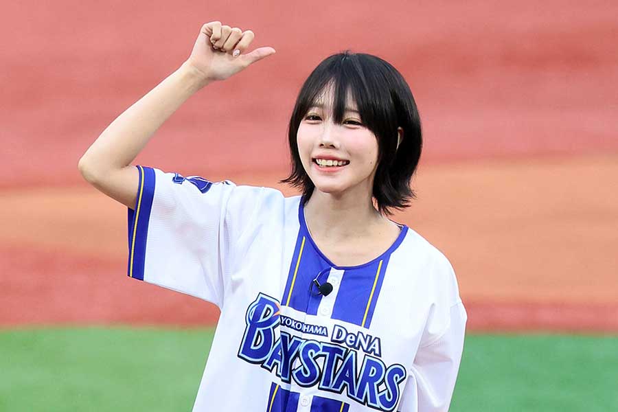 ハマスタに降臨した女性タレントが「フォーム綺麗」 見事な制球力に驚きの声「センスあるよね」