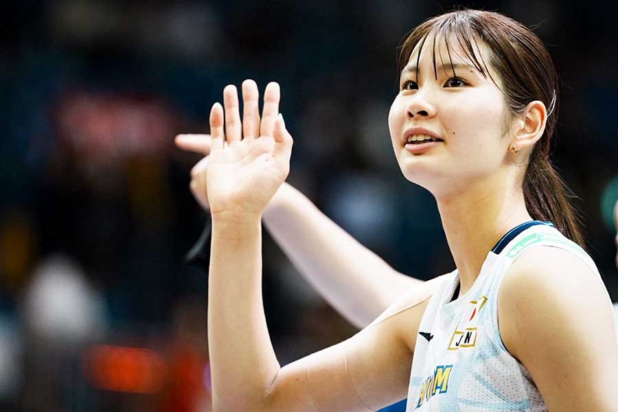 「買取大吉 バレーボールネーションズリーグ2025 千葉大会」の女子が12日、千葉ポートアリーナで行われた。世界ランク5位の日本は、予選ラウンド第3週の第3戦で同3位のポーランドを3-1(25-21、23-25、25-23、25-22)で撃破。21歳の北窓絢音は途中出場で攻守にわたり存在感を放った。代表初選出ながら、今大会はサーブなど要所での活躍が目立つ。コート上では頼もしいプレーを見せる一方で、「チキっちゃって……(臆病になっちゃって)」と初々しい素顔も覗かせた。