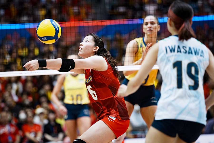 「買取大吉 バレーボールネーションズリーグ2025 千葉大会」の女子が13日、千葉ポートアリーナで行われた。日本は予選ラウンド最終戦で、ブラジルに0-3(17-25、18-25、20-25)のストレート負け。世界的スターの「ガビ」ことガブリエラ・ギマラエスガビに11得点を決められるなど完敗だった。イタリア・セリエAのコネリアーノで同僚だったセッター・関菜々巳は敵としても、味方としてもその凄みを知る。「世界一に相応しい」とその実力を称えた。