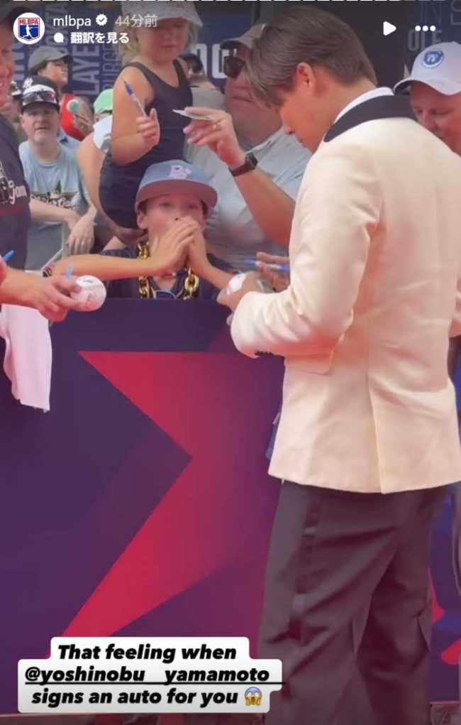 【画像】「これはヤバい…」「可愛すぎ」 山本由伸に“神対応”受けた米少年の表情の画像