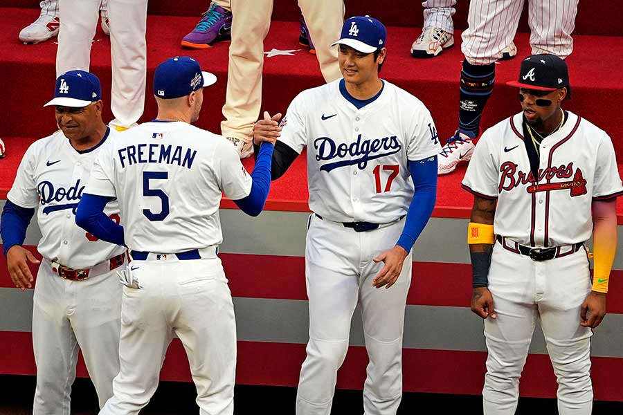 実はこのソロショットは選手自身が撮影したもの。米スポーツ専門局「FOXスポーツ」が流した試合前の選手たちを映した中継カメラには、大谷とフリーマンがカメラを持って、お互いを撮影しあう仲睦まじい姿が捉えられた。同局がMLB専門Xに動画を公開すると「何そのポーズwww」「彼女と彼氏の写真の撮り合い」といった話題を呼んでいた。