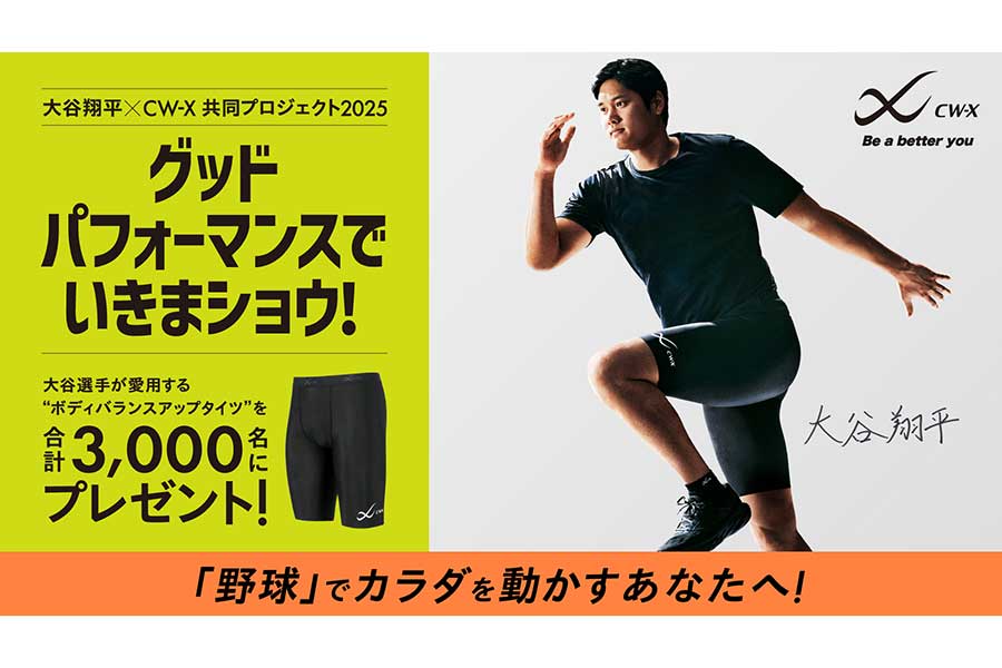 株式会社ワコールは17日、「CW-X」と米大リーグ・ドジャースの大谷翔平投手による共同プロジェクト「グッドパフォーマンスでいきまショウ!」を始動すると発表した。このプロジェクトでは、大谷が愛用する「ボディバランスアップタイツ」を約5000人に贈ることを通じ、“挑戦する人”を応援する取り組みを展開する。