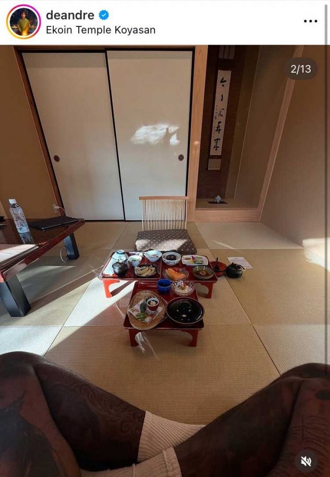 【画像】「日本の文化と歴史に感謝」 高野山で“修行体験”、精進料理を食べるジョーダンの実際の様子(画像はジョーダン自身のインスタグラムのスクリーンショット)