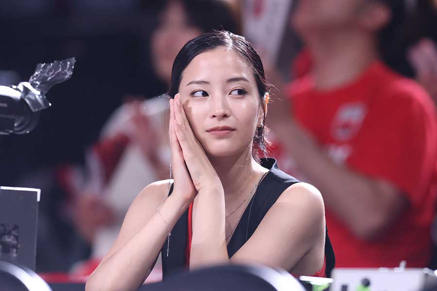 試合はテレビ朝日系で生中継され、SPブースターを務める広瀬は今月のオランダ戦に続いて会場に姿を見せた。赤のインナーに黒の肩だし衣装。大のバスケファンとして知られ、昨夏のパリ五輪にも応援に駆け付けていた。