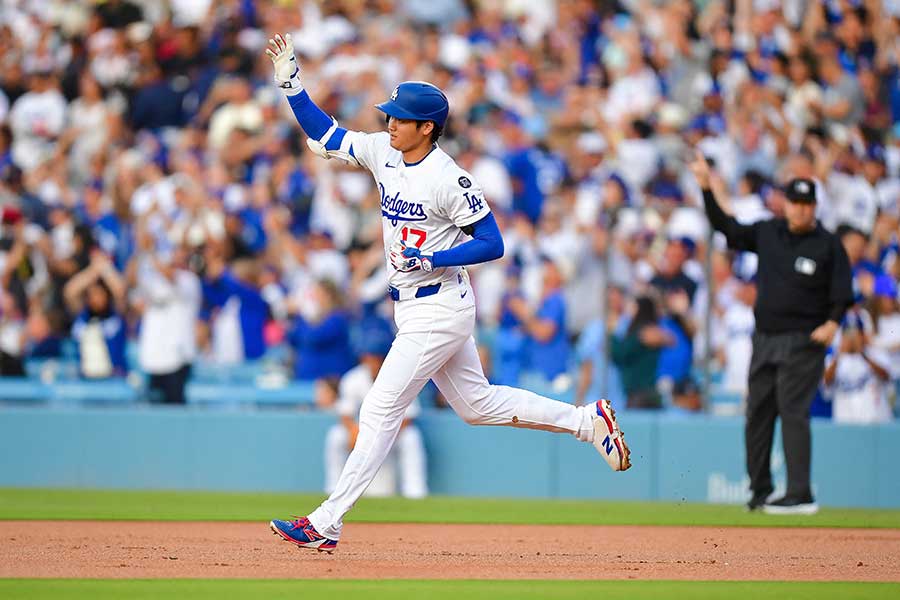 米大リーグ・ドジャースの大谷翔平投手は21日(日本時間22日)、本拠地ツインズ戦に「2番・DH兼投手」で先発。初回の第1打席で中堅バックスクリーンに飛び込む35号2ランを放った。これで3試合連続のアーチ。打球を捉えた直後、大谷の手から放たれたバットが宙を舞う美しい光景が捉えられ、ネット上の日本人ファンからは「かっこよすぎる。ロゴにしてくれ」との声まで漏れた。