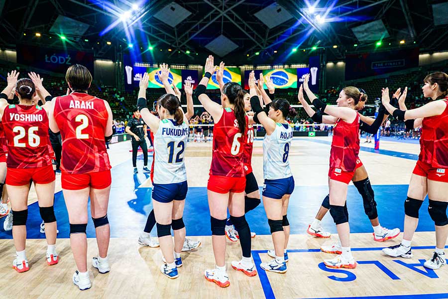 バレーボールのネーションズリーグ(VNL)女子の決勝ラウンドが現地26日、ポーランドで行われ、世界ランキング4位の日本は準決勝で同2位のブラジルに2-3(25-23、20-25、18-25、25-19、8-15)で敗戦。2大会連続の決勝進出を逃した。試合後にブラジルのエースが日本選手を労うシーンがあった