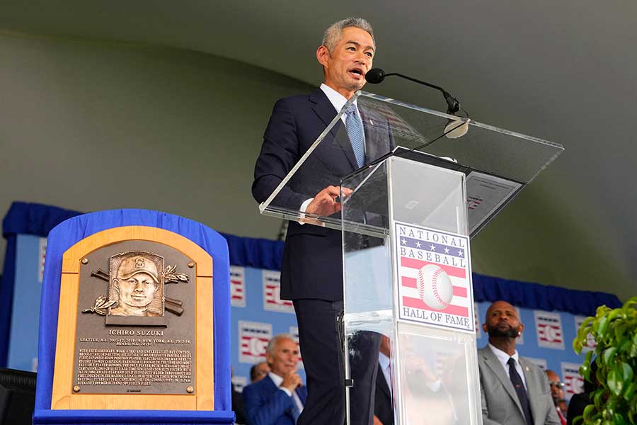 マリナーズなどで米大リーグ通算3089安打をマークし、アジア選手初の米野球殿堂入りを果たしたイチロー氏が27日(日本時間28日)、ニューヨーク州クーパーズタウンで表彰式典に出席した。英語で行った約19分間のスピーチには、米番組のホストから賛辞が並んだ。
