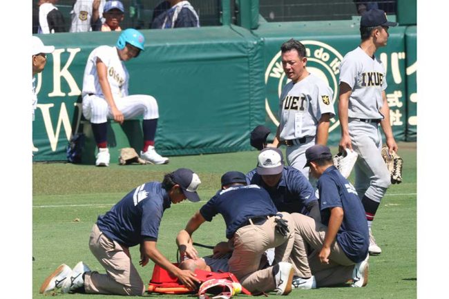 【画像】酷暑の甲子園で出動「大丈夫か」 動けなくなった球児が担架で運ばれた実際の写真