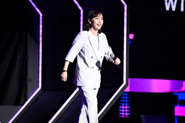 “生の石川佳純”に中国ファンから地鳴りのような歓声 シックな水色衣装で登場 流暢な中国語も