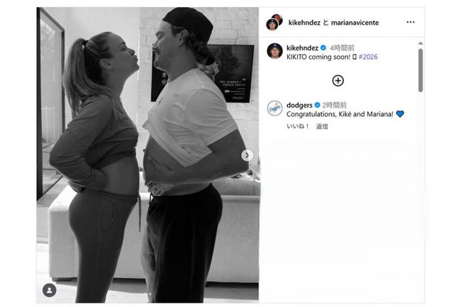 ドジャースにまたも舞い込んだ朗報「待ちきれないわ!」「イエーイ!」 大谷&由伸も「いいね!」 キケの報告を米祝福 2025.08.14 著者 : THE ANSWER編集部 キーワード : ドジャース Twitter Facebook B!Bookmark 【画像】「未来の小さな」 キケが公開した第2子を妊娠した妻・マリアナさんとの2ショット写真 こちらもオススメ▶︎ドジャースの最新ニュースをチェック