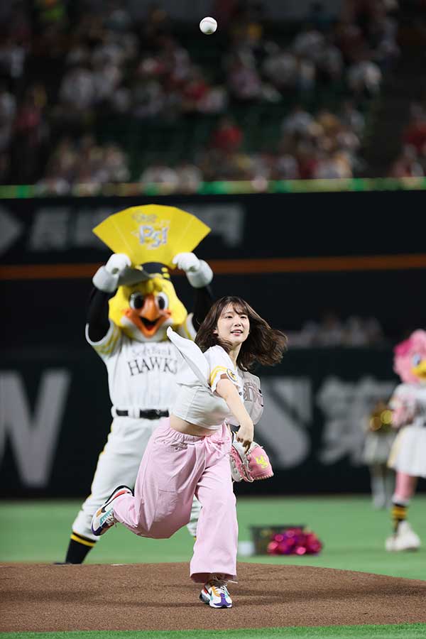 始球式に現れた“6戦6勝”の女神「毎日投げろ」「なんなら先発」 お腹ちらり投球に福岡喝采