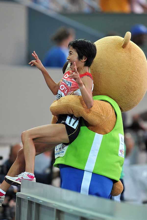 日本女子を抱きかかえ…タンクトップで大暴れ 09年、縦横無尽のドイツ発マスコットが話題【追憶の世界陸上】
