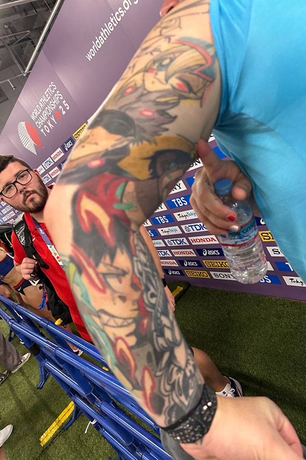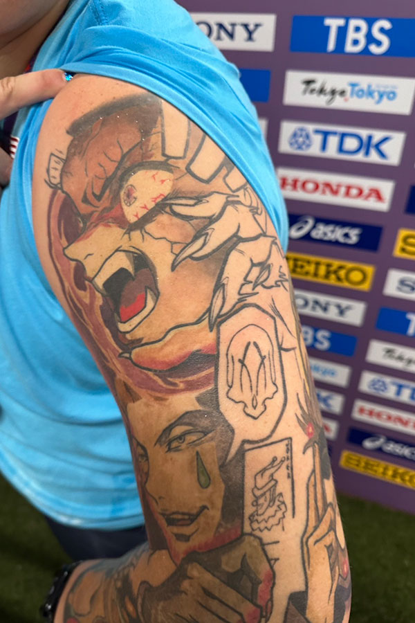 日本アニメのタトゥーぎっしり 取材エリアで炸裂した愛…女子砲丸銀メダリスト「肌が足りない」【東京世界陸上】 2025.09.24 著者 : THE ANSWER編集部・鉾久 真大 キーワード : 世界陸上 Twitter Facebook B!Bookmark 【画像】ルフィにコダック、禰豆子にブラックマジシャンガール…「肌が足りない」ほどぎっしりなアニメタトゥーの実際の写真 こちらもオススメ▶︎世界陸上の最新ニュースをチェック