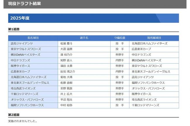 虎党、現役ドラフトに悲鳴「うわああああ」「マジでショック」 ドラ2大砲候補を放出 2025.12.09 著者 : THE ANSWER編集部 Twitter Facebook B!Bookmark 【表】NPBが発表した現役ドラフトの一覧表 こちらもオススメ▶︎現役ドラフトから這い上がった“大当たり” 球宴出場、侍ジャパン選出も…過去の成功例は