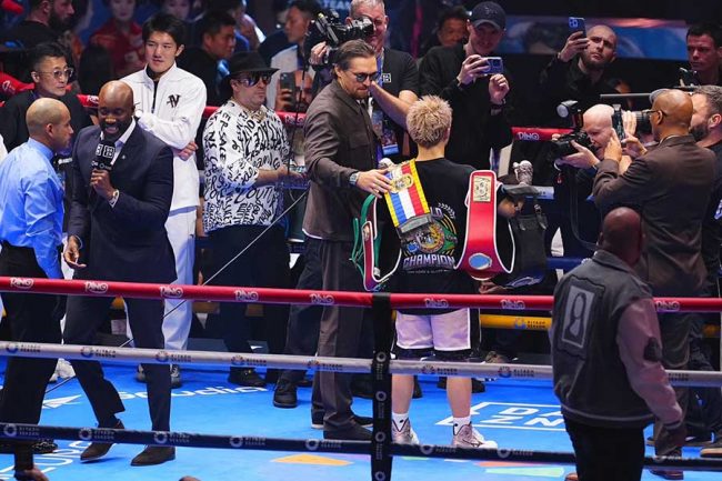 井上尚弥をPFP1位の超大物ウシクが称賛 客席1列目で観戦「強い男だ」フェザー級転向も「普通のこと」 2025.12.27 著者 : THE ANSWER編集部 キーワード : 井上尚弥 Twitter Facebook B!Bookmark 【画像】試合後のリングに上がり…!? ウシクが井上尚弥に”おねだり”した実際のシーン 【写真:荒川祐史】 こちらもオススメ▶︎井上尚弥の最新ニュースをチェック