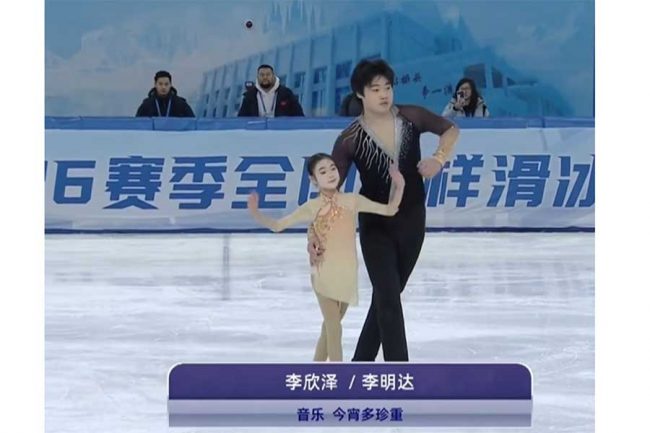 【画像】まるで大人と子ども 演技する中国ペアの様子(画像は中国メディア「直播吧(Zhibo8)」のスクリーンショット)