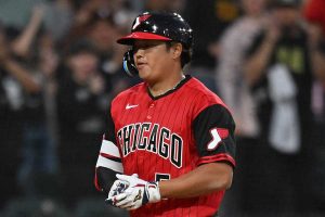 2026.04.25米大リーグ・ホワイトソックスの村上宗隆内野手が24日(日本時間25日)、本拠地ナショナルズ戦に「3番・一塁」で先発出場。今季11号同点ソロを放った。3打数1安打1打点1四球で、5-4で勝ったチームに貢献。生還後、ベンチで広がった光景が話題になった。