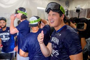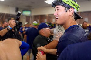 大谷翔平、優勝後にインスタ更新 シャンパンファイトずぶ濡れ写真&動画を公開 54号2ランで貢献