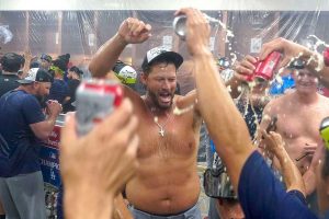 引退カーショーが名言&迷言連発 シャンパンファイトで「シャツはいらないし、パンツだって…」
