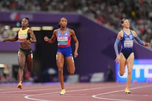 2025.09.20陸上の世界選手権東京大会は連日、国立競技場で超人たちが熱戦を繰り広げている。第7日の19日に行われた女子200メートル決勝は9人で行われるはずだったが、決勝でアンソニーク・ストラチャン(バハマ)がフライング失格。結局8人でのレースとなり、メリッサ・ジェファーソンウッデン(米国)が21秒69で制し、100メートルとの2冠を達成した。
