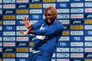 2025.09.15陸上の世界選手権東京大会(国立競技場)第3日は15日、男子100メートルの表彰式が行われ、銅メダルを獲得したノラ・ライルズ(米国)がドラゴンボールのかめはめ波ポーズを披露。金メダルは逃したが、セレモニーの“主役”を張った。