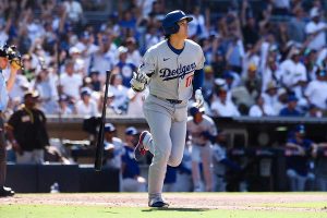 2025.08.25米大リーグ・ドジャースの大谷翔平投手は24日(日本時間25日)、敵地パドレス戦に「1番・DH」で先発出場。4打数1安打1打点で8-2の勝利に貢献した。9回にはリーグトップに並ぶ45号ソロ。これでメジャー史上3度目の事象が生まれたと米データ会社が紹介している。