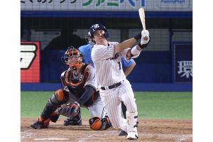 山田哲人の仕草に「泣く」 HR直後に“つば九郎”を受け取り…ベンチ前の光景に「感動した」の声