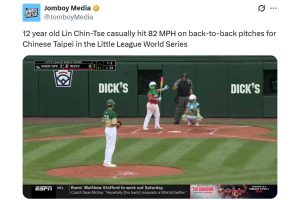 2025.08.18米ペンシルベニア州ウィリアムズポートで行われているリトルリーグ・ワールドシリーズで、台湾の投手が記録した剛球が注目を集めている。投本間の距離を大リーグのグラウンドに換算すると、実に時速107マイル(172.2キロ)に達する剛速球で、打者はお手上げ状態だ。