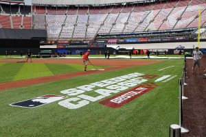 2025.08.03米大リーグは2日(日本時間3日)に自動車レース「NASCAR」の会場ブリストル・モータースピードウェー(テネシー州)でレッズ―ブレーブス戦を開催した。同会場での公式戦は初。天気は雨だったが大勢のファンが詰めかけた。