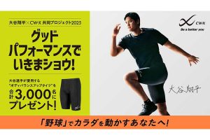2025.07.17株式会社ワコールは17日、「CW-X」と米大リーグ・ドジャースの大谷翔平投手による共同プロジェクト「グッドパフォーマンスでいきまショウ!」を始動すると発表した。このプロジェクトでは、大谷が愛用する「ボディバランスアップタイツ」を約5000人に贈ることを通じ、“挑戦する人”を応援する取り組みを展開する。