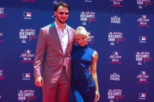 2025.07.17米大リーグのオールスターゲームが15日(日本時間16日)、米アトランタで行われた。試合前に行われる恒例のレッドカーペットショーでは、“怪物”ポール・スキーンズとともに、大胆ドレス姿の恋人もファンの視線をくぎ付けにした。