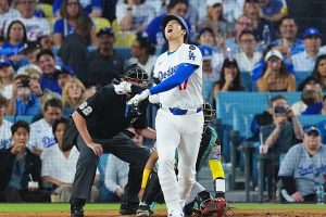 2025.05.22米大リーグ・ドジャースの大谷翔平投手は21日(日本時間22日)、本拠地ダイヤモンドバックス戦に「1番・DH」で先発出場。21年のサイ・ヤング賞右腕コービン・バーンズと対戦し、4回の第2打席では自打球が2度もあり、痛みから絶叫した。