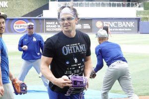 キケが「大谷の伝説」Tシャツで練習登場 50-50達成の地で粋な着用、中央には「LEVEL MVP」の文字も