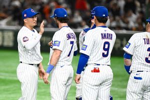 2025.03.16「MLB 東京シリーズ by Guggenheim」は16日、プレシーズンゲームのカブス―巨人戦が東京ドームで行われた。先発した巨人のフォスター・グリフィン投手はカブス打線を相手に4回まで快投するも5回に4失点。5回5安打4失点で降板した。ファンからは「今年もタイムリー欠乏症でグリフィン無援護」と同情されている。