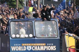 大谷翔平、今年も妻・真美子さんと優勝パレードに参加 WS連覇でLAファンの声援浴びる