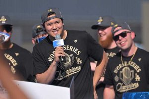 山本由伸が英語で優勝スピーチ「Losing isn’t an option!」 スペイン語で挨拶も、LAファン喝采