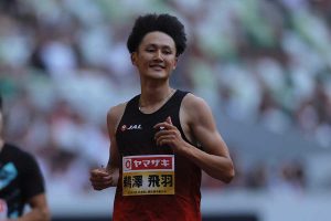 2025.07.069月に東京・国立競技場で開催される陸上・世界選手権の代表選考会を兼ねた日本選手権は6日、同会場で最終日が行われた。男子200メートル決勝は、鵜澤飛羽(JAL)が20秒12(無風)で制して3連覇を達成。代表に内定した。